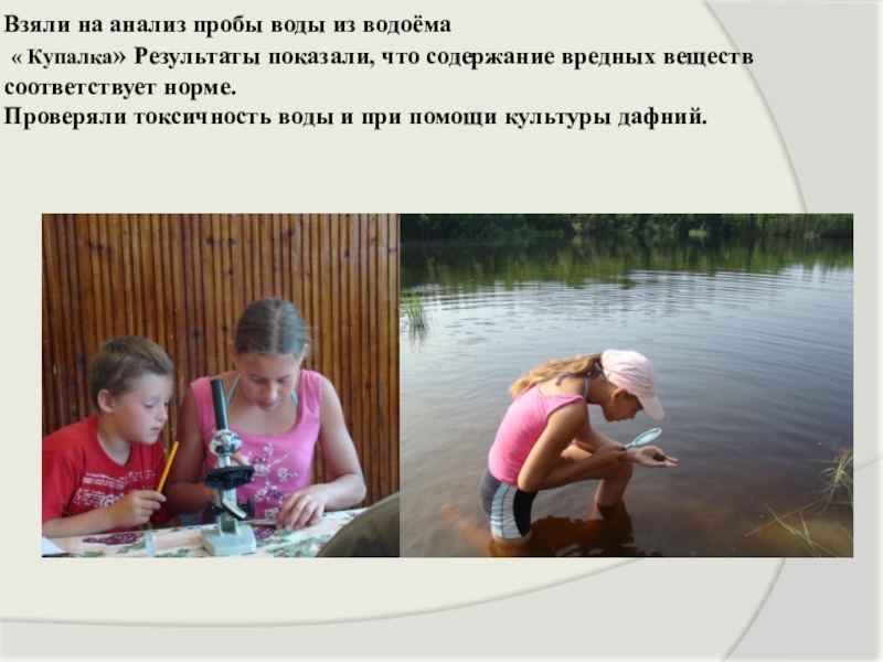 Слайд 9Взяли на анализ пробы воды из водоёма