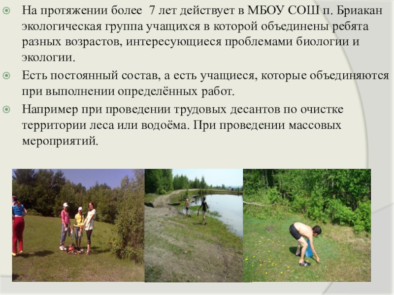Слайд 1Работа экологической группы п. Бриакан района имени П. Осипенко.
