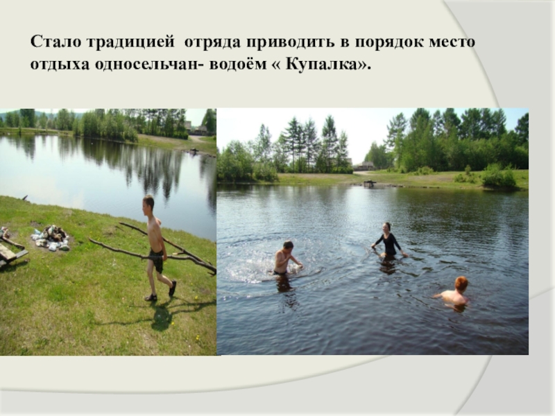 Слайд 8Стало традицией отряда приводить в порядок место отдыха односельчан- водоём «