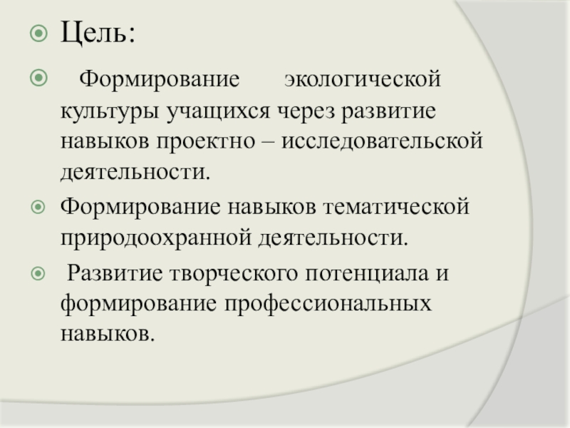 Приобщение ребят к вопросам экологии, познанию и умению жить в гармонии с окружающей средой, познанию себя и родного края. Совместная деятельность педагогического и детского коллективов по природоохранной и краеведческой деятельности.