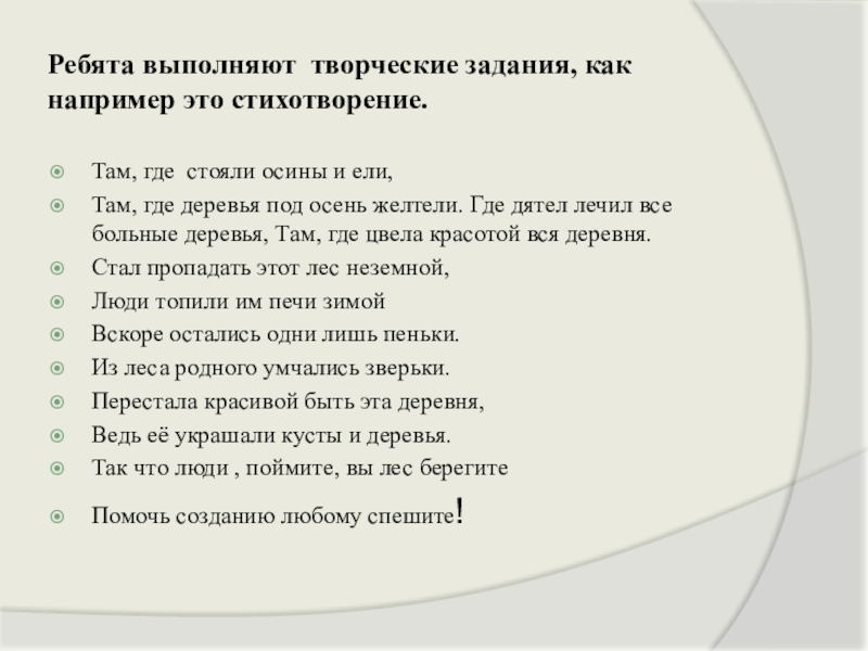 Слайд 18Ребята выполняют творческие задания, как например это стихотворение.