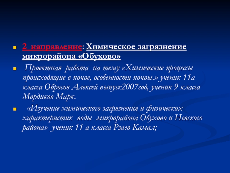 2 направление: Химическое загрязнение микрорайона «Обухово»