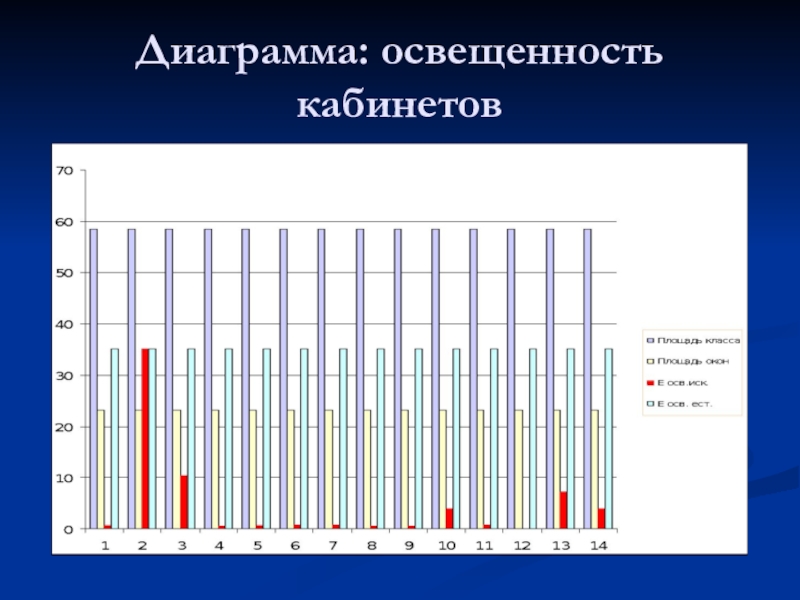 естественное освещение, площадь окон и помещения величины постоянные, то освещенность класса я рассматривала по параметру искусственного освещения.
