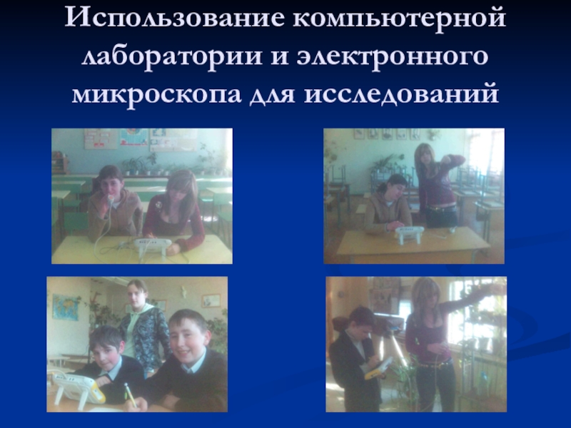 Слайд 20Использование компьютерной лаборатории и электронного микроскопа для исследований
