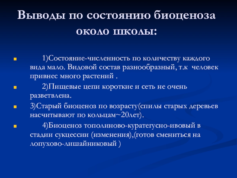 Слайд 32Выводы по состоянию биоценоза около школы: