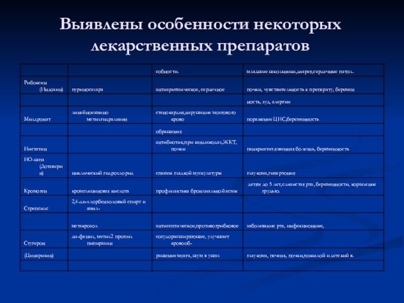 Слайд 28Выявлены особенности некоторых лекарственных препаратов