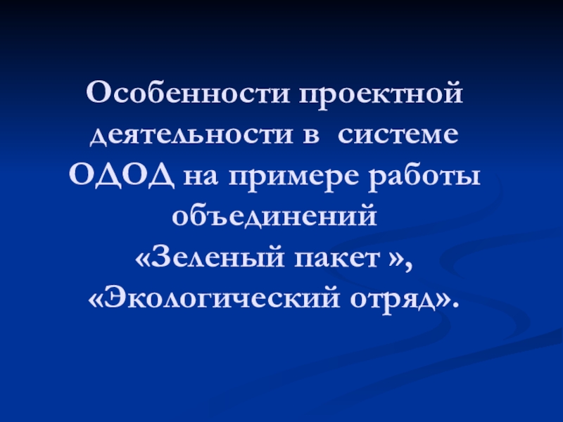 Слайд 1Особенности проектной деятельности в системе ОДОД на примере работы объединений