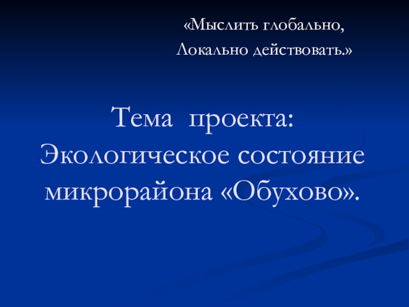 Слайд 2Тема проекта: Экологическое состояние микрорайона «Обухово».