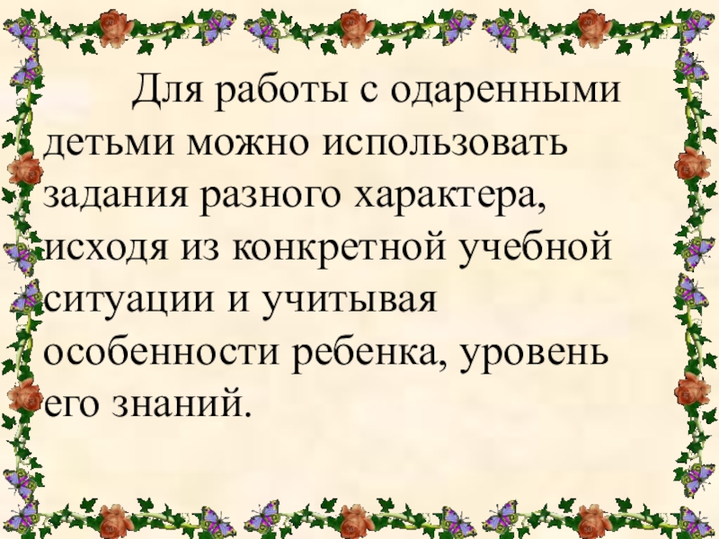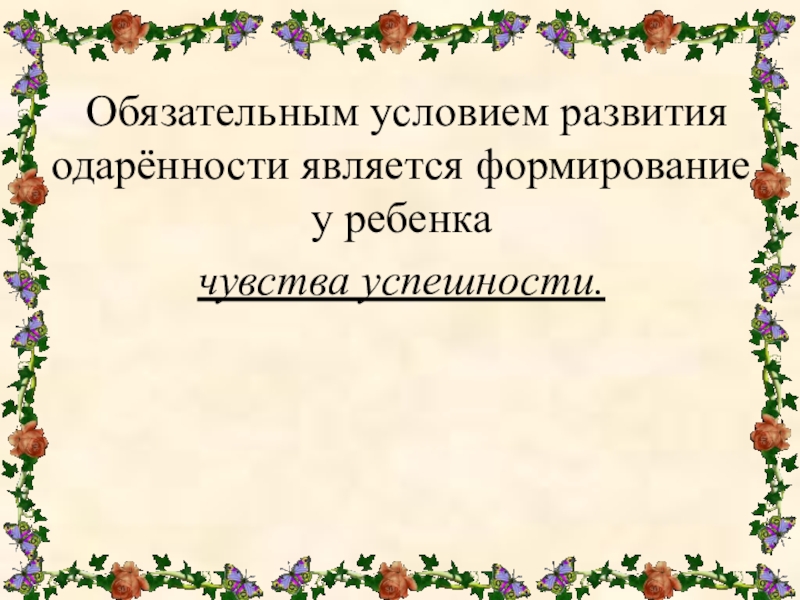 Слайд 21 Обязательным условием развития одарённости является формирование у ребенка