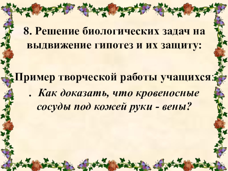 Слайд 188. Решение биологических задач на выдвижение гипотез и их защиту: