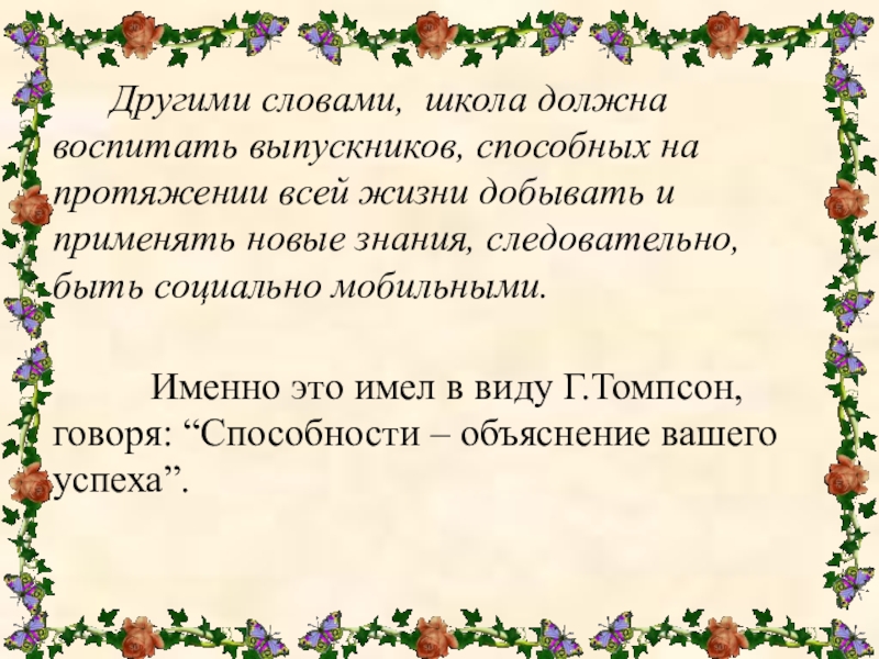 Именно это имел в виду Г.Томпсон, говоря: “Способности – объяснение вашего успеха”.