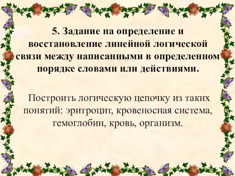 Построить логическую цепочку из таких понятий: эритроцит, кровеносная система, гемоглобин, кровь, организм.