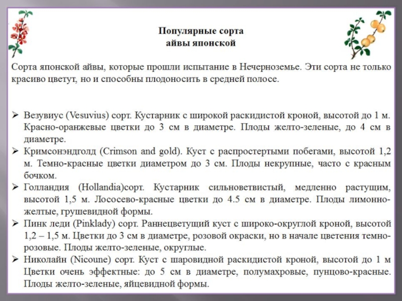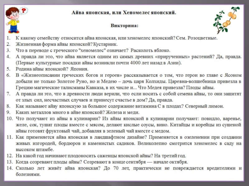 Презентация, доклад на тему Рассказы о деревьях и кустарниках. Айва японская - расколоть яблоко.