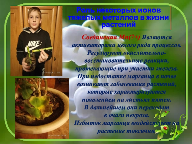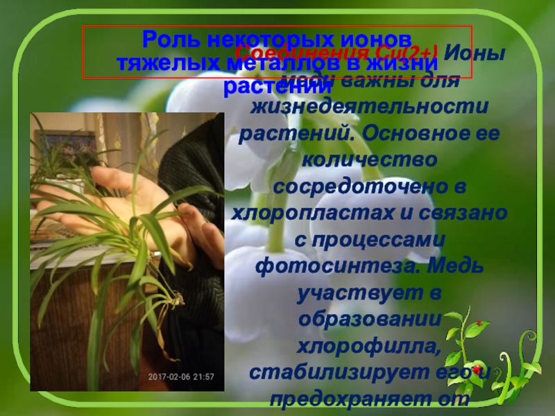 Роль некоторых ионов тяжелых металлов в жизни растений