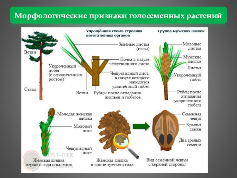 Слайд 10Все голосеменные – разноспоровые растения; микроспорофиллы и макроспорофиллы сильно различаются по
