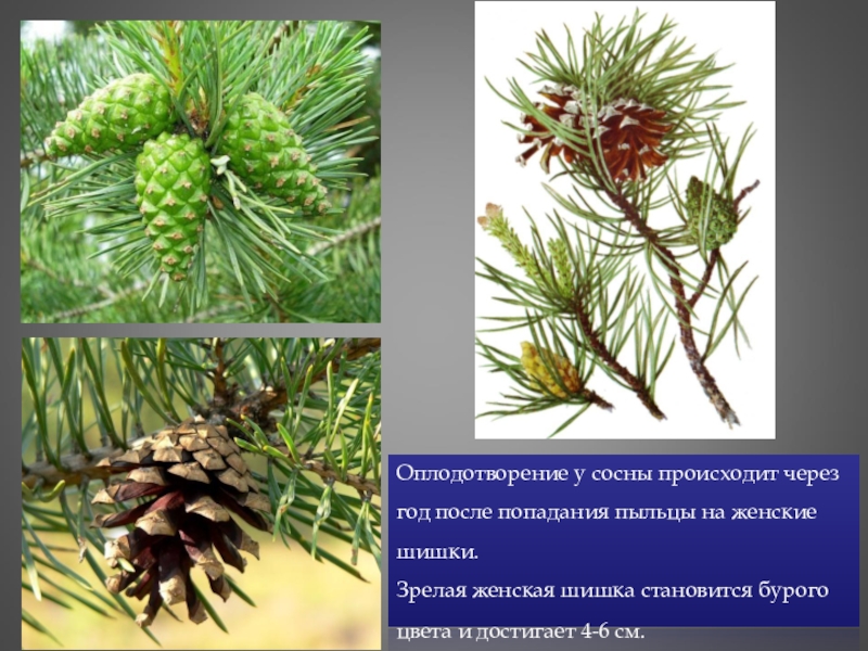 Слайд 26Оплодотворение у сосны происходит через год после попадания пыльцы на женские