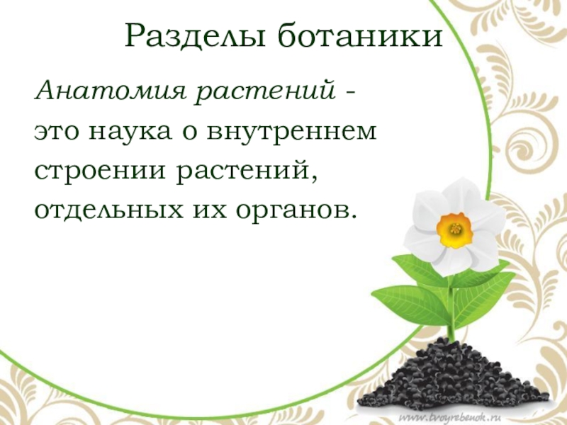 Разделы ботаники	Анатомия растений - 	это наука о внутреннем	строении растений, 	отдельных их органов.