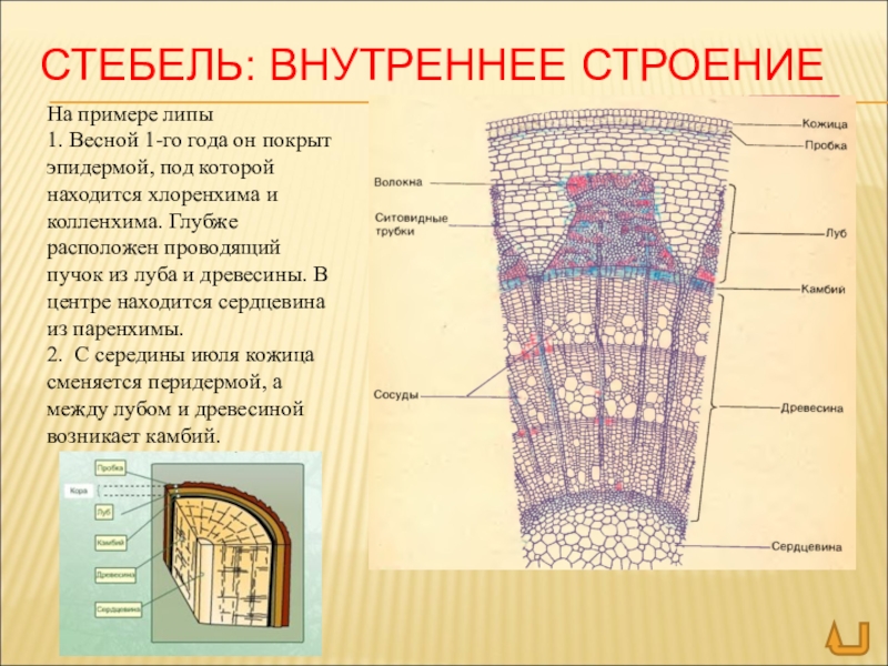 На вершине зачаточного стебля расположен конус нарастания – это образовательная ткань.