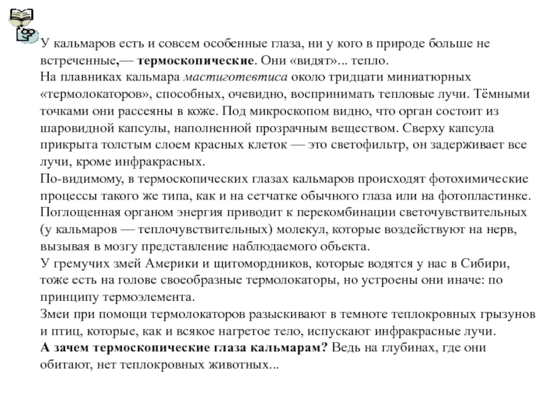 А зачем термоскопические глаза кальмарам? Ведь на глубинах, где они обитают, нет теплокровных животных...