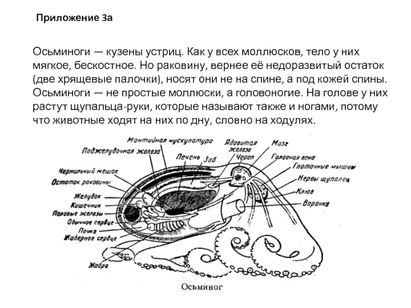 Слайд 9Осьминоги — кузены устриц. Как у всех моллюсков, тело у них