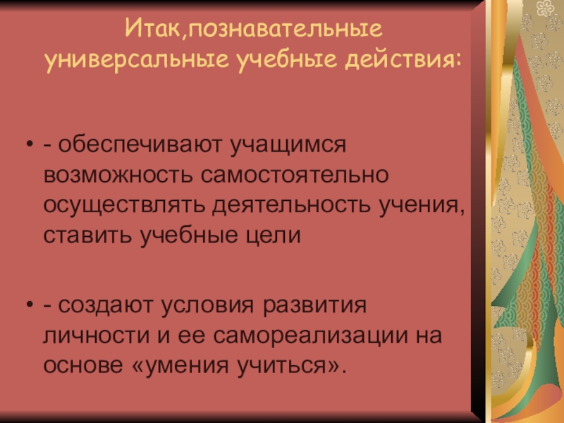 Слайд 27Итак,познавательные универсальные учебные действия: