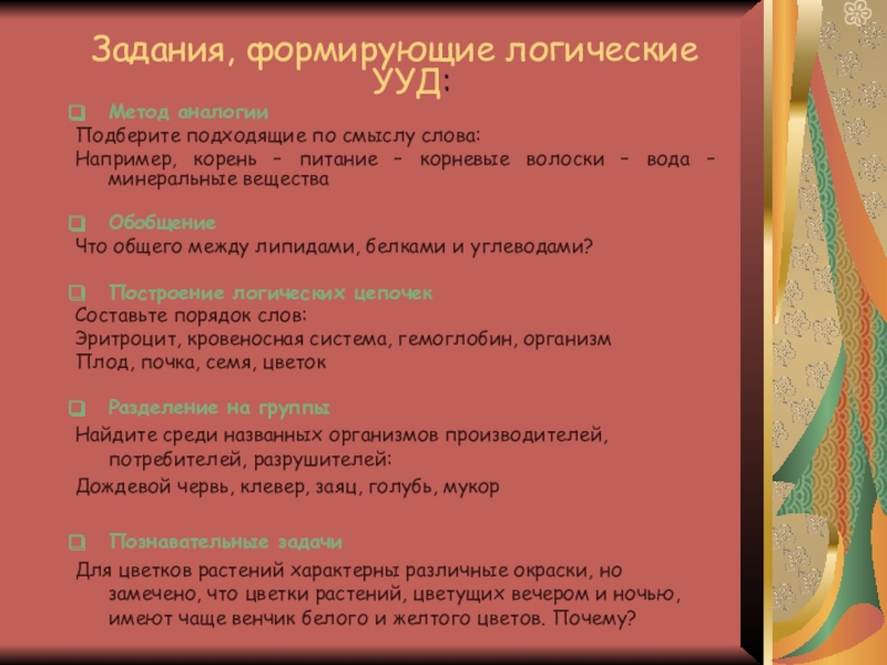 Слайд 8Задания, формирующие логические УУД: