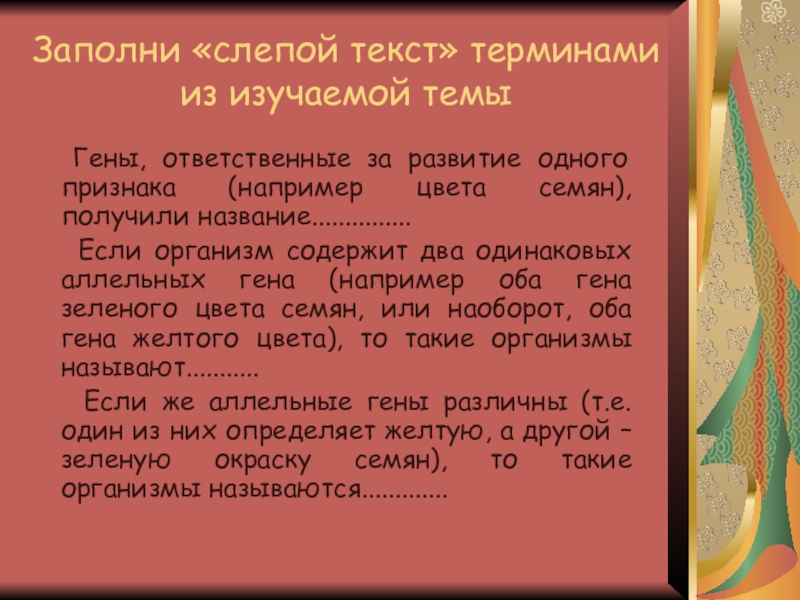 Слайд 22Заполни «слепой текст» терминами из изучаемой темы