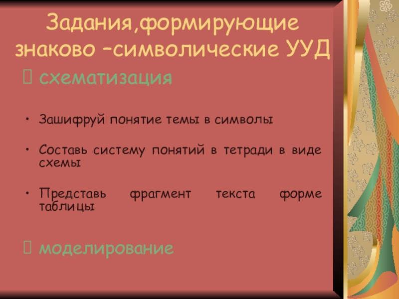 Слайд 11Задания,формирующие знаково –символические УУД