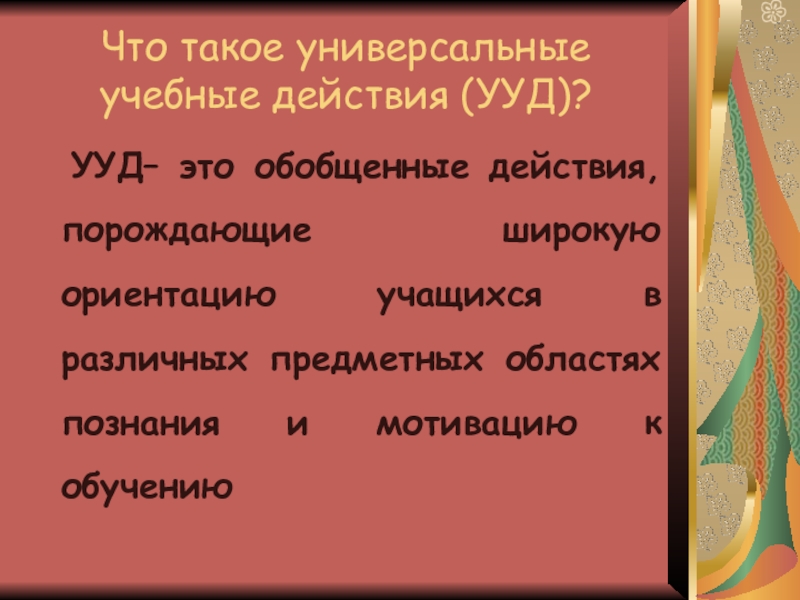 Слайд 2Что такое универсальные учебные действия (УУД)?