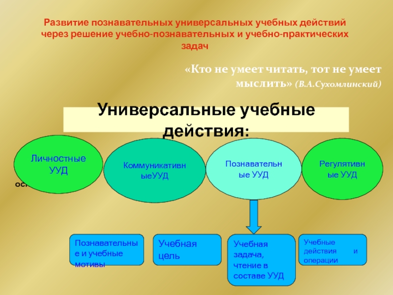 Слайд 14Развитие познавательных универсальных учебных действий через решение учебно-познавательных и учебно-практических задач