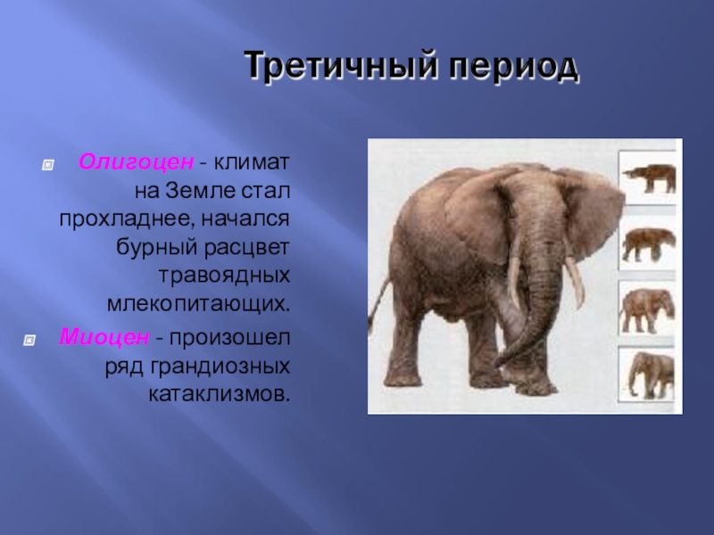 Слайд 9Олигоцен - климат на Земле стал прохладнее, начался бурный расцвет травоядных