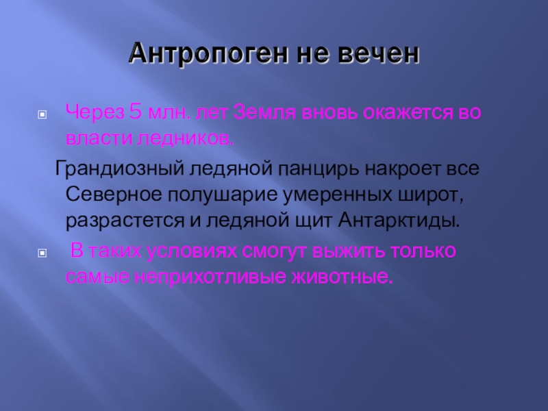 Слайд 12Через 5 млн. лет Земля вновь окажется во власти ледников.