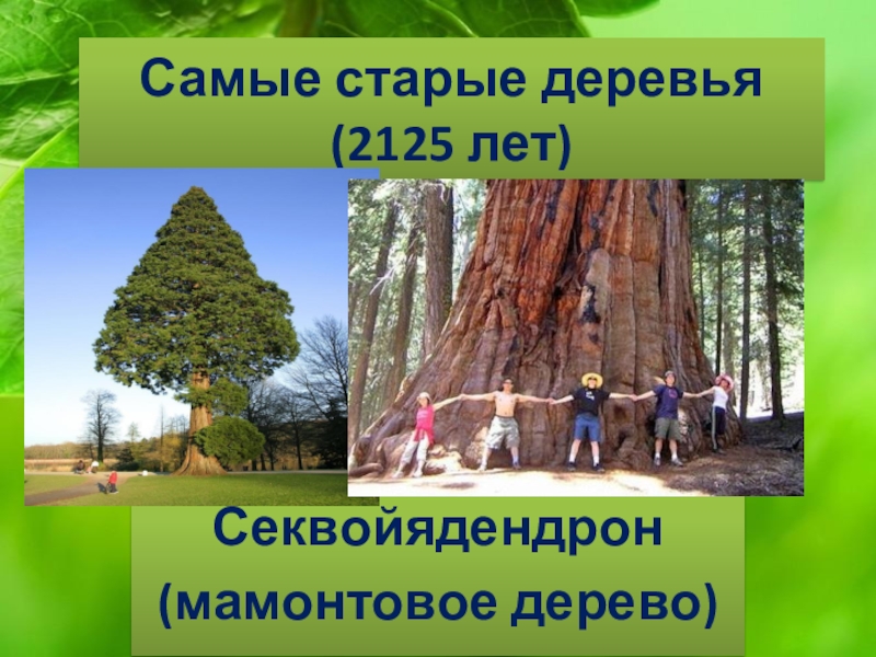 Самые старые деревья (2125 лет)Секвойядендрон (мамонтовое дерево)
