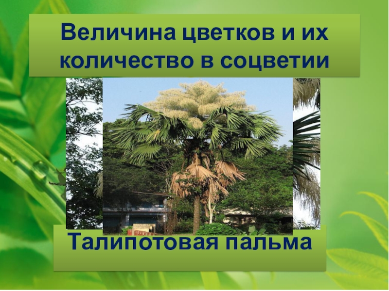Величина цветков и их количество в соцветииТалипотовая пальма