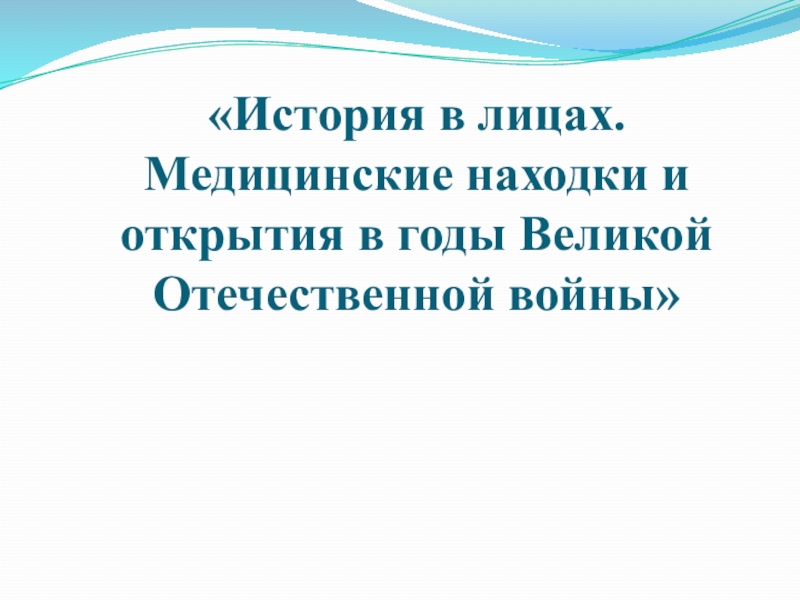Слайд 8«История в лицах. Медицинские находки и открытия в годы Великой Отечественной