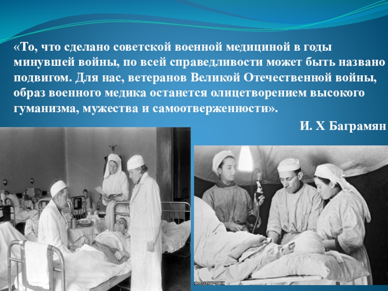 Слайд 9«То, что сделано советской военной медициной в годы минувшей войны, по