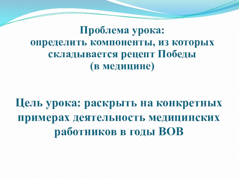Слайд 4Цель урока: раскрыть на конкретных примерах деятельность медицинских работников в годы