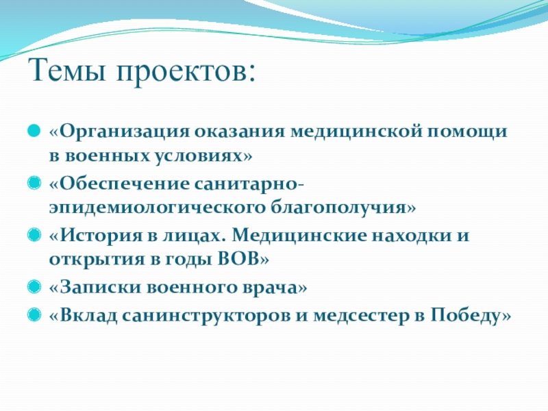 Слайд 5Темы проектов: