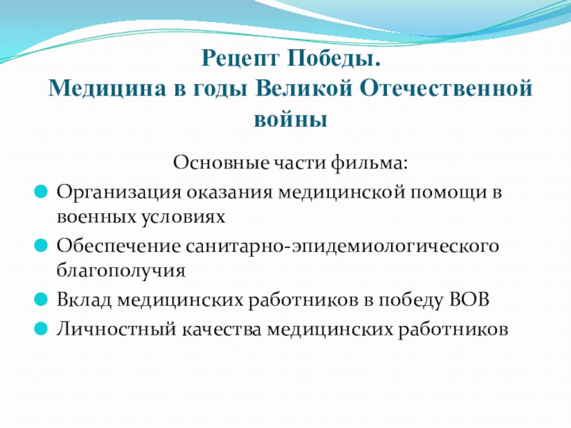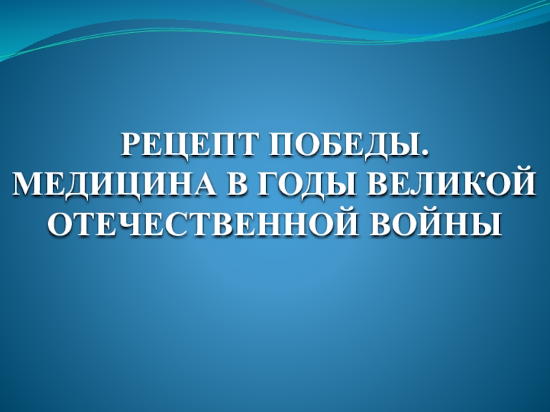 Слайд 25Рецепт Победы. Медицина в годы ВОВ