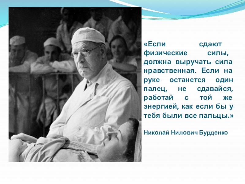 Слайд 22«Если сдают физические силы, должна выручать сила нравственная. Если на руке
