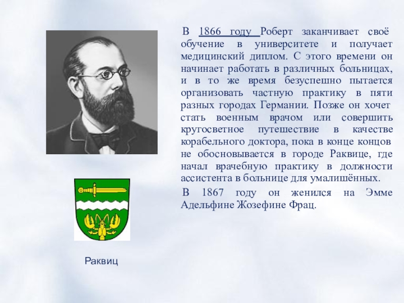 В 1866 году Роберт заканчивает своё обучение в университете и получает