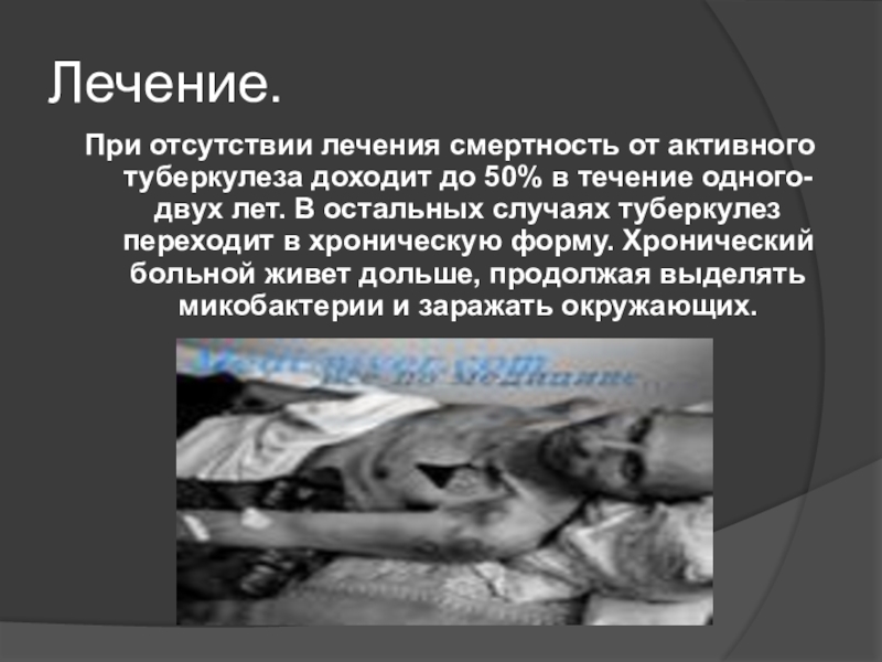 При отсутствии лечения смертность от активного туберкулеза доходит до 50% в течение одного-двух лет.