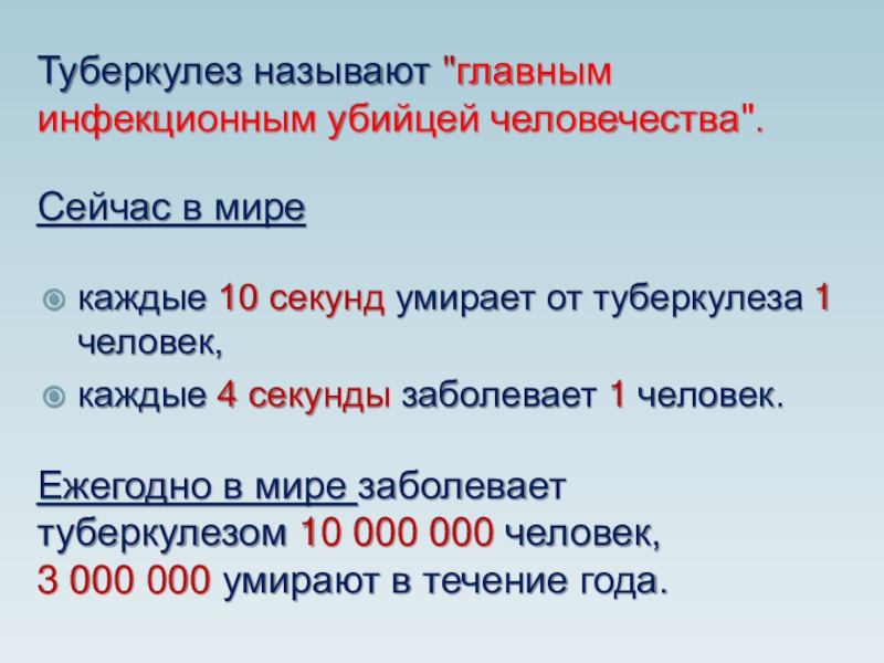 Ежегодно в мире заболевает туберкулезом 10 000 000 человек,