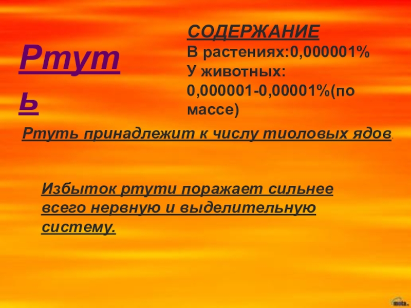 Содержание в организме животных: 0,000001-0,00001%