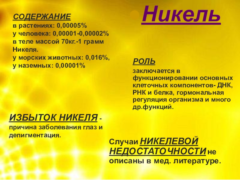 среднем 0,003% (по массе).Он активизирует 30 ферментных систем в клетке.