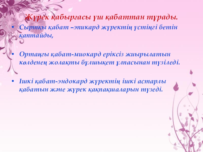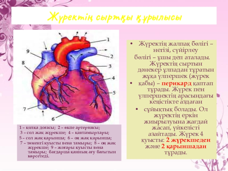 бөлігі – ұшы деп аталады. Жүректің сыртын дәнекер ұлпадан тұратын жұқа үлпершек (жүрек