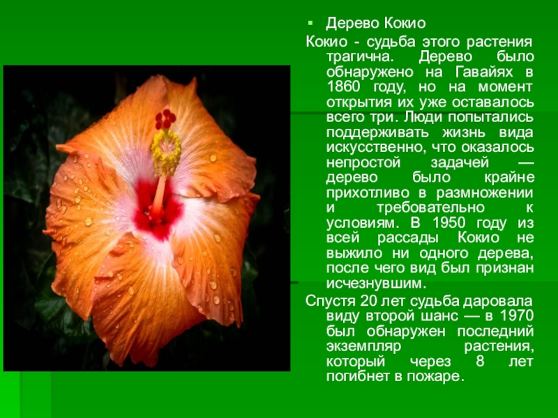 Кокио - судьба этого растения трагична. Дерево было обнаружено на
