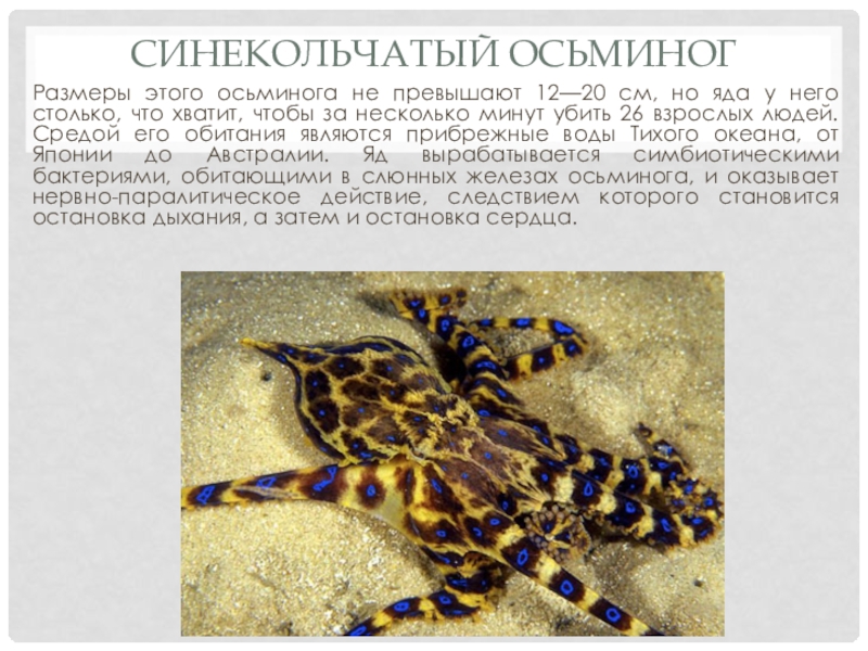 Больше всего ядовитых животных встречается среди паукообразных и змей. Однако помимо них как на суше, так и в воде есть много и других обитателей, главным оружием которых является мощный токсичный коктейль. Мы разыскали 10 представителей других видов, имеющих особые органы, вырабатывающие опасный яд.