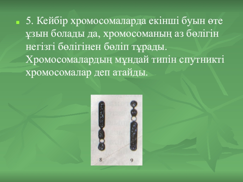 бөлігін негізгі бөлігінен бөліп тұрады.Хромосомалардың мұндай типін спутникті хромосомалар деп атайды.