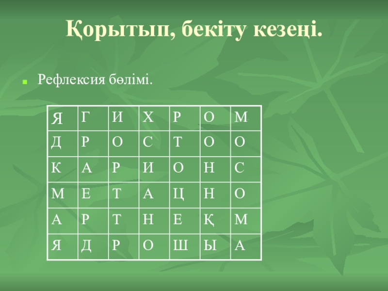 2. Үй тапсырмасын сұрау кезеңі.(20 минут)